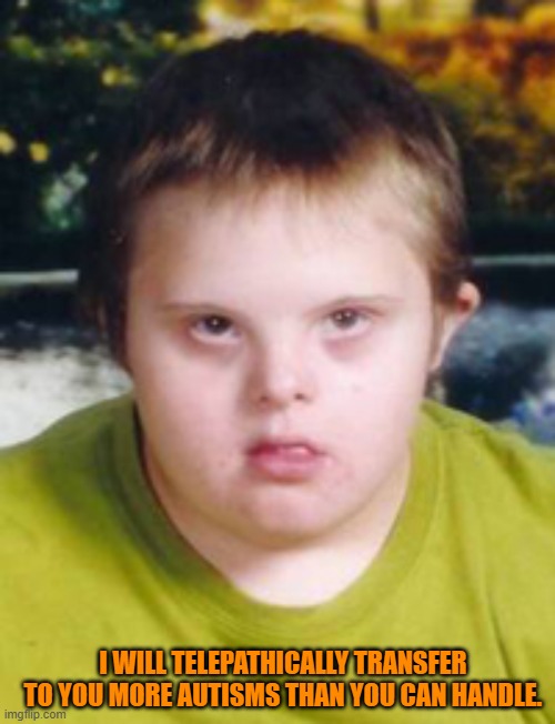 More autism* pretty close though. And that individual has down syndrome, which is different so I'm slightly offended.