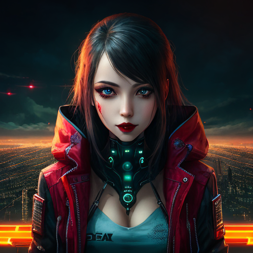 But if you need a text prompt, I would say: a cute, innocent-looking teenage girl, with long braided hair, red skin, blue eyes, and long, leather robes.