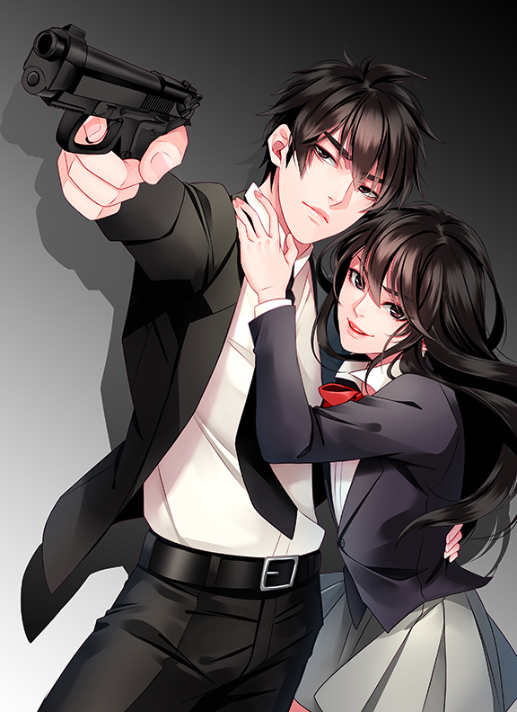 Below is an examples of the type of cover I want, but make it nicer than my laughingly poor sketch. what I want to see is: Have Ko on the (viewer's) left side of the image and have him pointing his gun in EXTREME PERSPECTIVE at the viewer. But YOU MAY be able to get away with a half shot of them, meaning not showing all of their legs so you can zoom in a bit (you know what i mean)