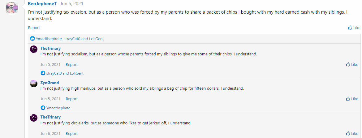 Could each of you share your favorite funny posts on the forums? They can be from threads or from profiles. There is no limit to how many to share here so please share to your heart's content. Please share via the quote button, screenshots, and/or link to the post. Here are a few screenshots to give an idea of what I'm talking about. Things that would make most people who see it think this,