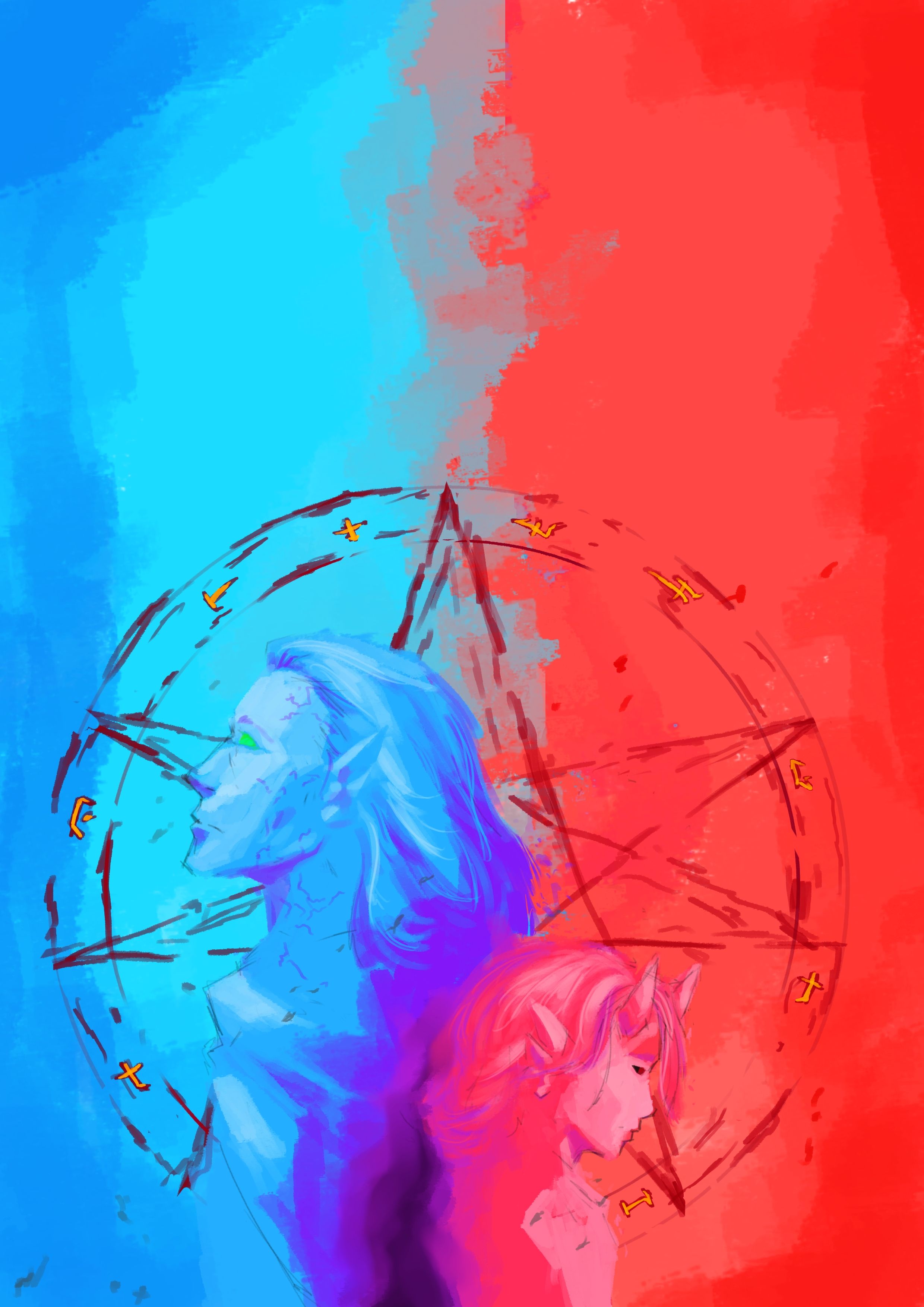 The word "Abaddon" overlaps with the stars because the center, basically the letter "D," The white fill inside the letters overlaps the sketchy red lines of the star creates messy visual tangents. It draws the eye for the wrong reasons. It's bad for readability. Try to avoid this with full paint; you can try to use different colors so that they don't overlap, which can make a distraction in people's minds. And the letter "D" is almost the same as the letter "O."