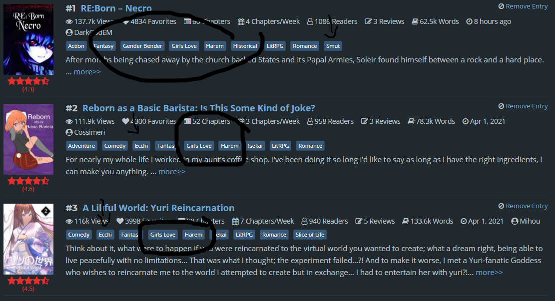- @Reisinling with the 2nd highest chapter count.
