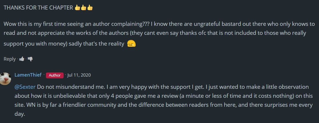 Still, you are kinda wrong. Most really doesn't tell you why they like or dislike your story. Maybe your story receives such helpful feedback but, from what I can see, most don't.