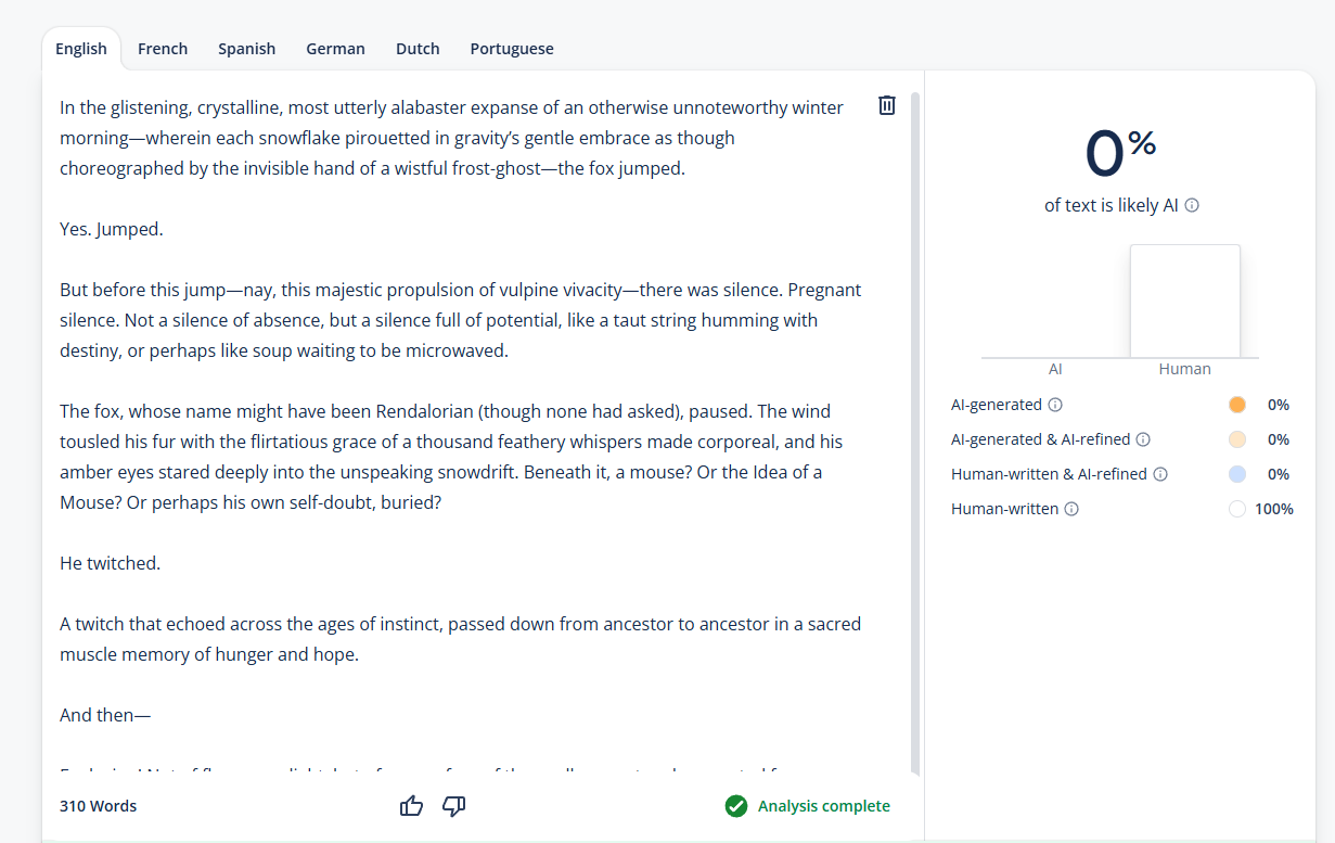 So yes, that will be all in the "let's trust the AI checker" department. Have a nice day.