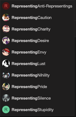 I am still new to this community and I dont know much about it. From what I have gathered someone named Tony is the top dog. Another group I have encountered a lot on my forum scrolling are Representing Seven Sins. RepresentingEnvy, RepresentingWrath, etc. I also see others mentioning them alot.