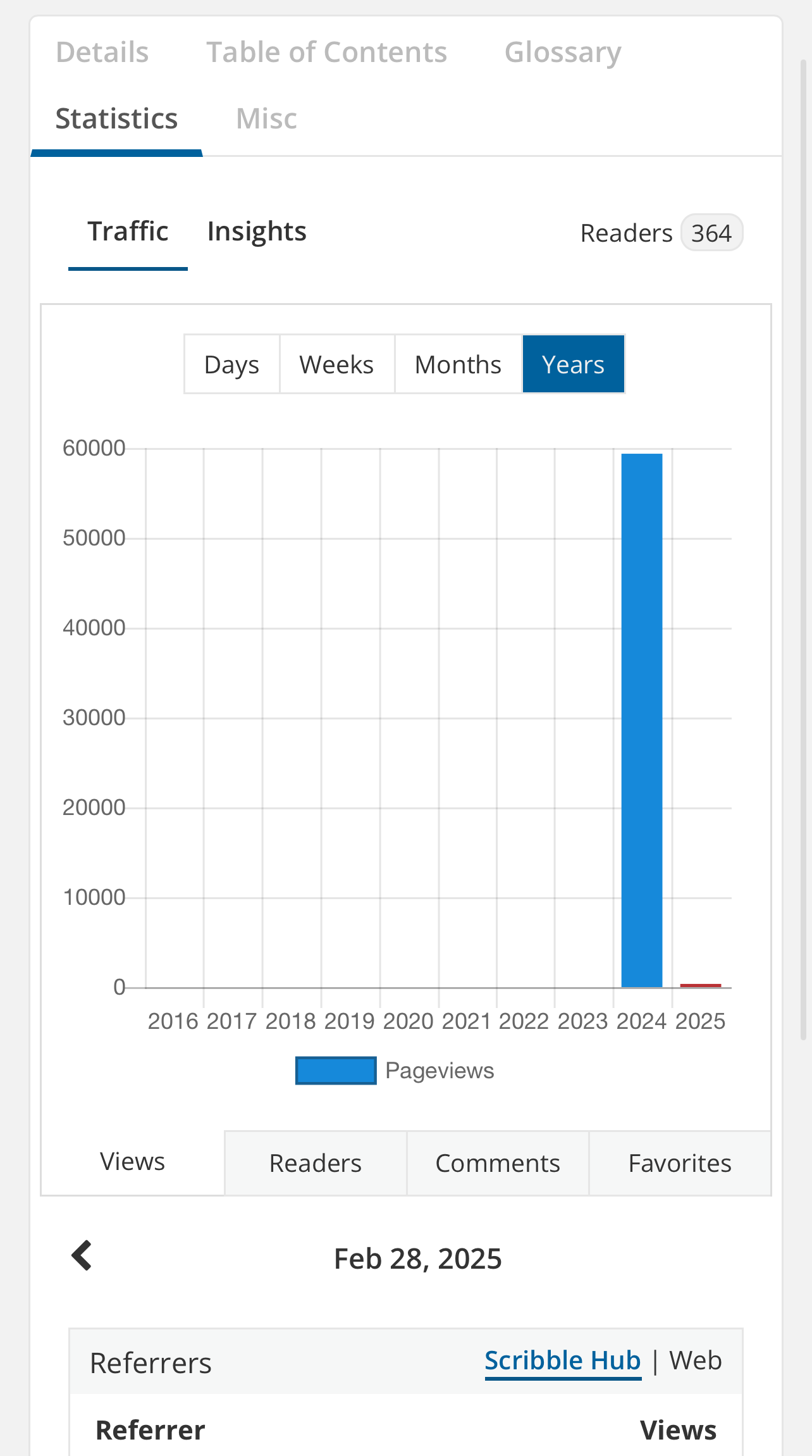 The story was published in 2020. But all views, readers, comments and favourites are grouped into 2024. Same problem with my other story.
