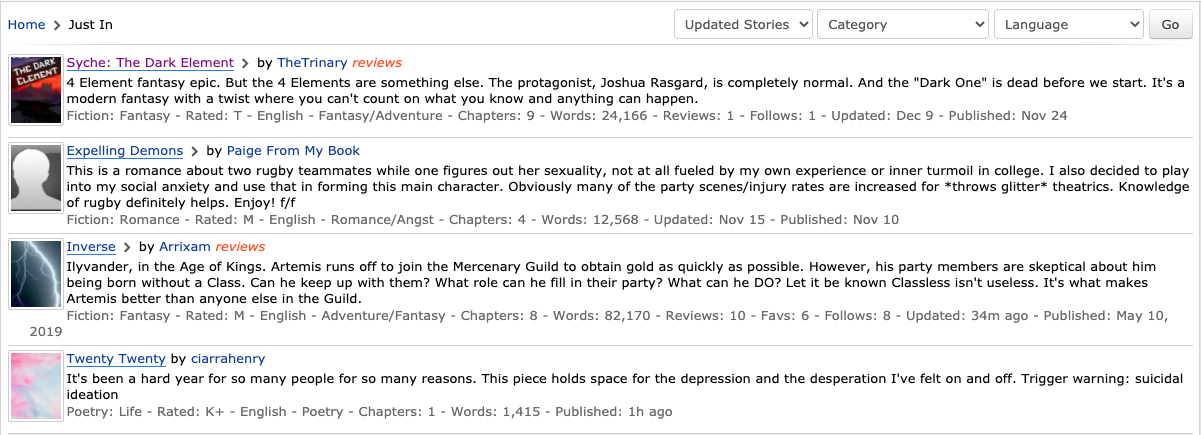 For instance, take fictionpress: