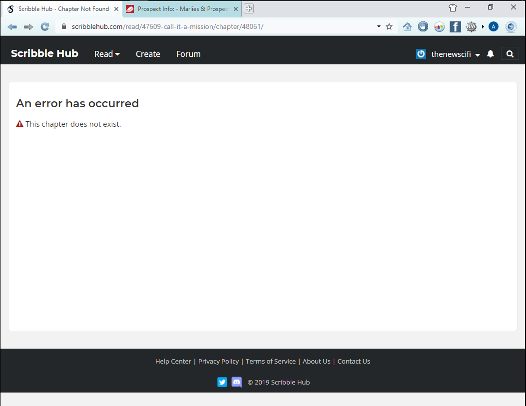 When I go to the home page of my new series: https://www.scribblehub.com/series/47609/call-it-a-mission/ and click on Read, I get a page that reads: