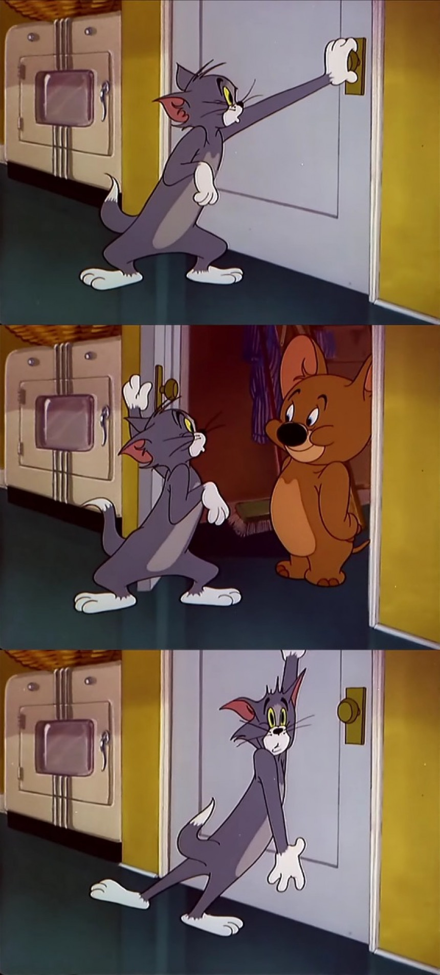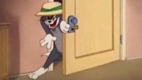 I need help to find a meme where a cartoon character is walking in, ready to do cursed shit or anything similar with great face expression