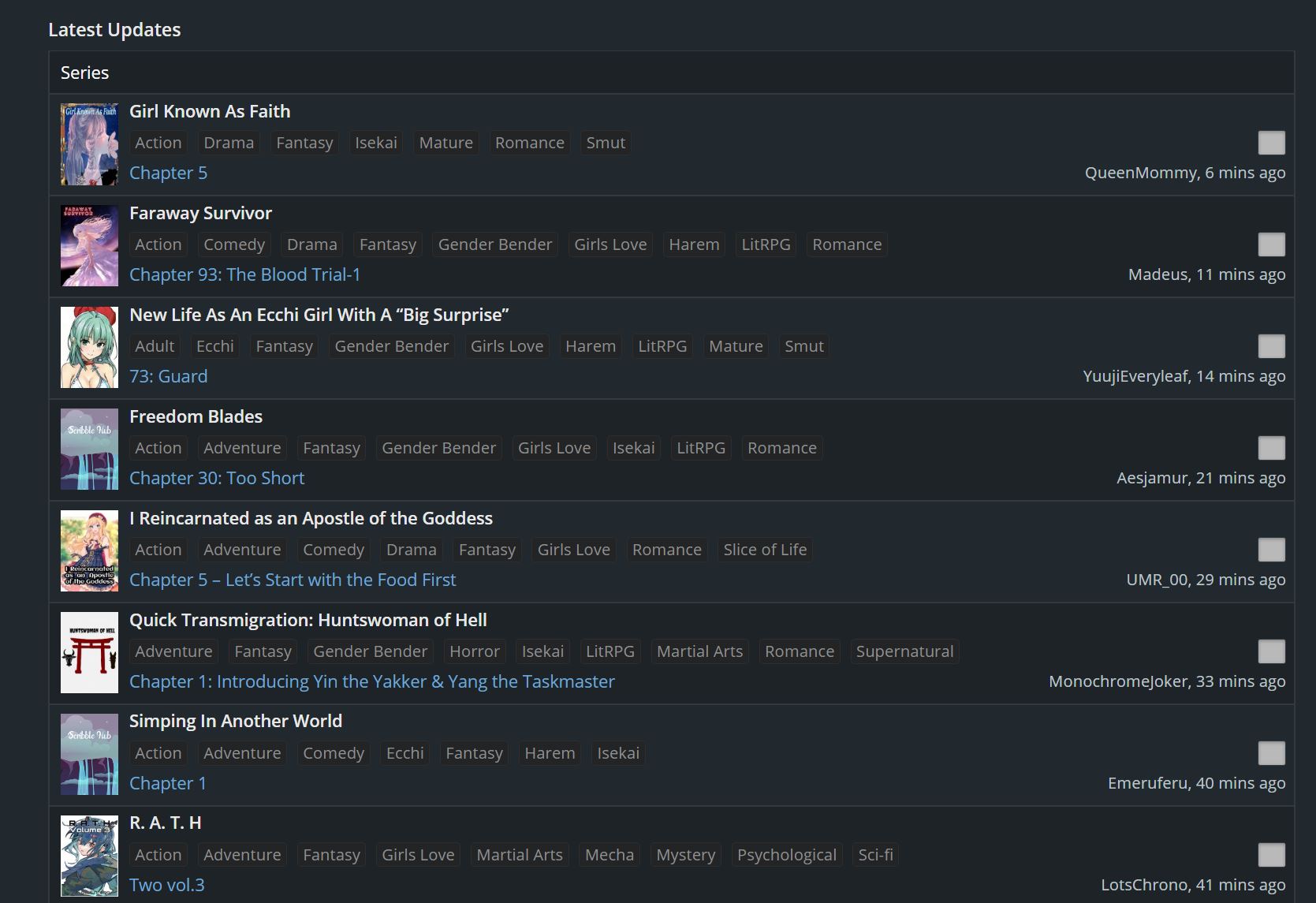 Edit: I've attached two photos showing what I mean. My chapter was uploaded 13 minutes ago and yet it cannot be found in the latest updates.