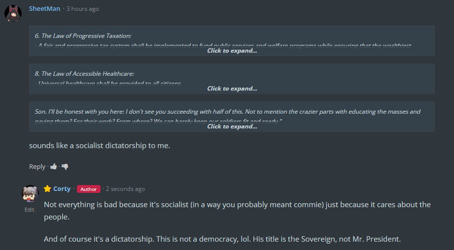 If you've been sharing stories on the internet for more than a day, you've definitely gotten at least one comment from a reader that makes you think "Who chews this guy's food for him?". Like this one I got on XNPC, where someone was so desperate for an excuse to glaze communism that they invented a scenario that never happened in the book to justify bringing it up.