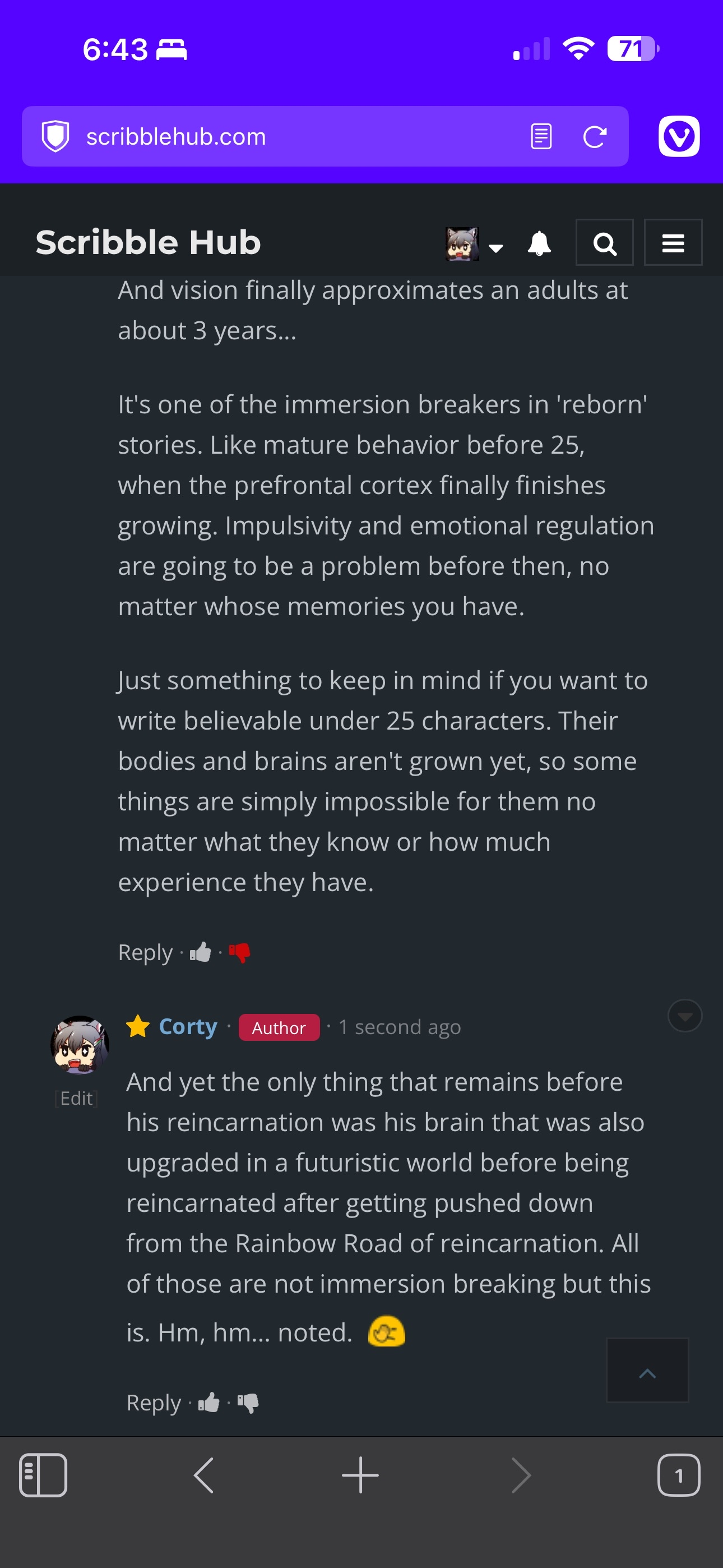 All my readers comments were actually reasonable. The only really stupid ass comment came from someone on RR who didn't even read a single chapter. I wasn't in a happy mood that day.
