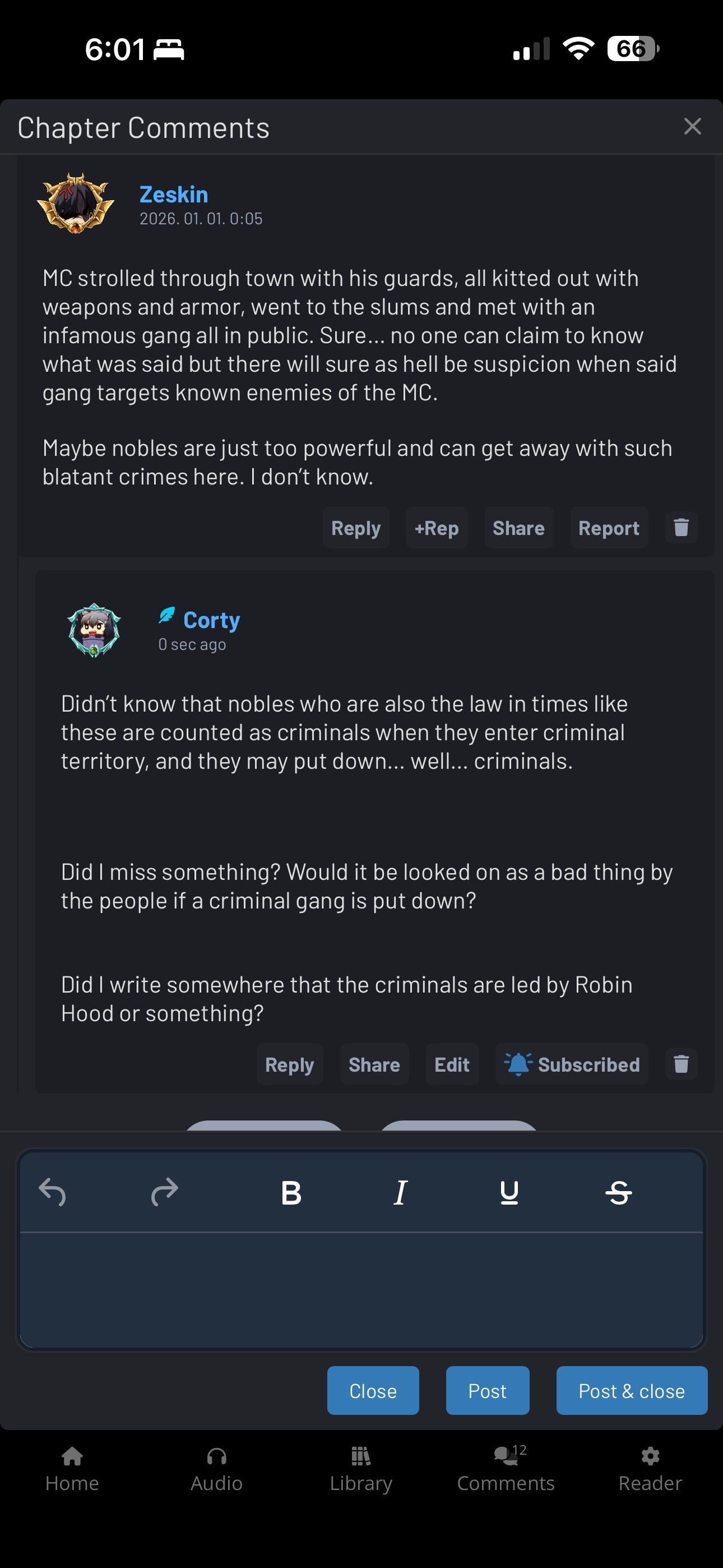 As you can see, it's such a weird wording, it feels too specific - at the same time, it's absurdly unspecific. The only thing he kind of specified was, suspiciously, the only thing he ever commented under the actual story, which was at Chapter 25. That, in itself, was just a non-combatant character being shocked. And he phrases it, as if it was about "all combat" scenes, which aren't that action-y in my novel, that's true, but, uhm, it was the first combat scene here. He had literally nothing to compare it to. Everything else is a complete nothing-burger and that totally irks me.