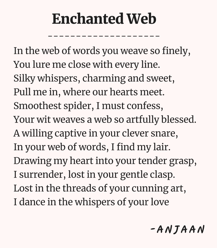 "Fly, my dear," Spidey said, with a creepy cheer, "You’ve landed in my lap, I fear."
