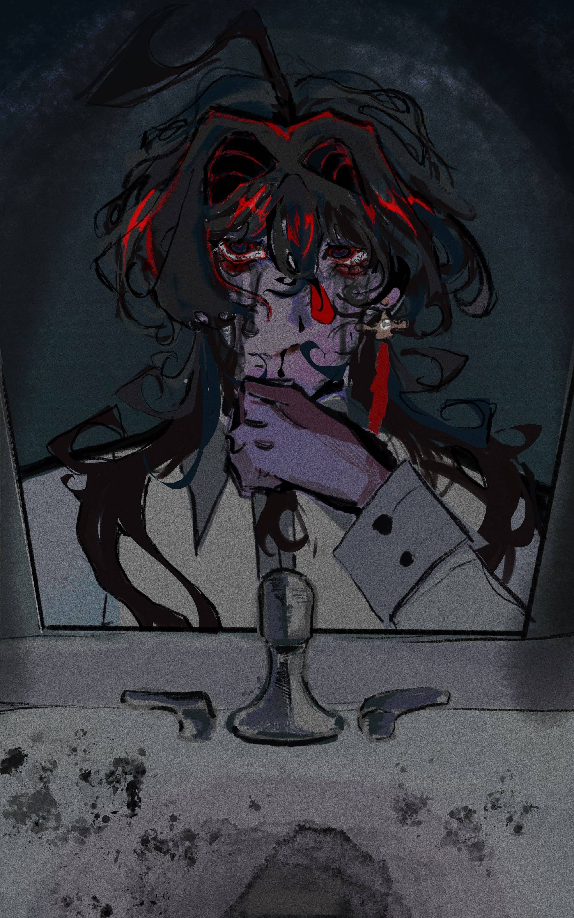 Perfect art for a Horror story. Genuinely creepy and offsetting (and I mean this in a positive way.)