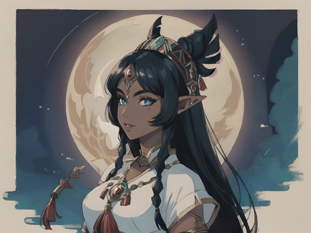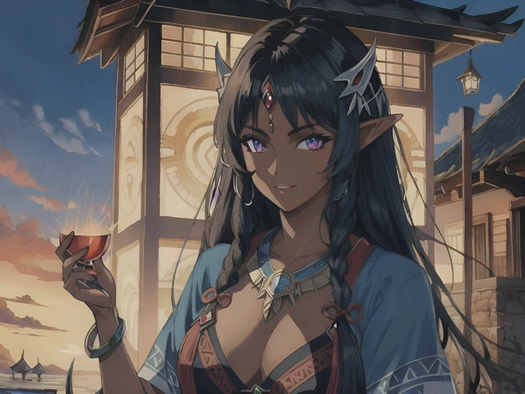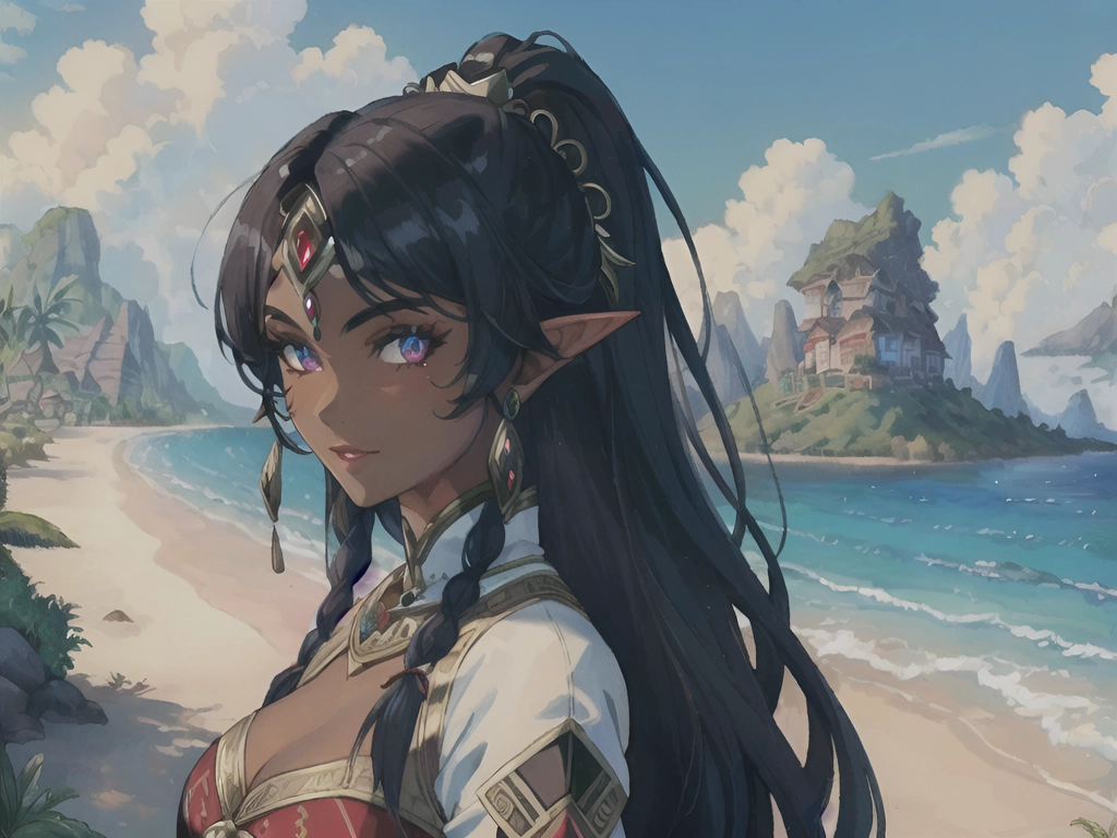 Polynesian dark elf woman.