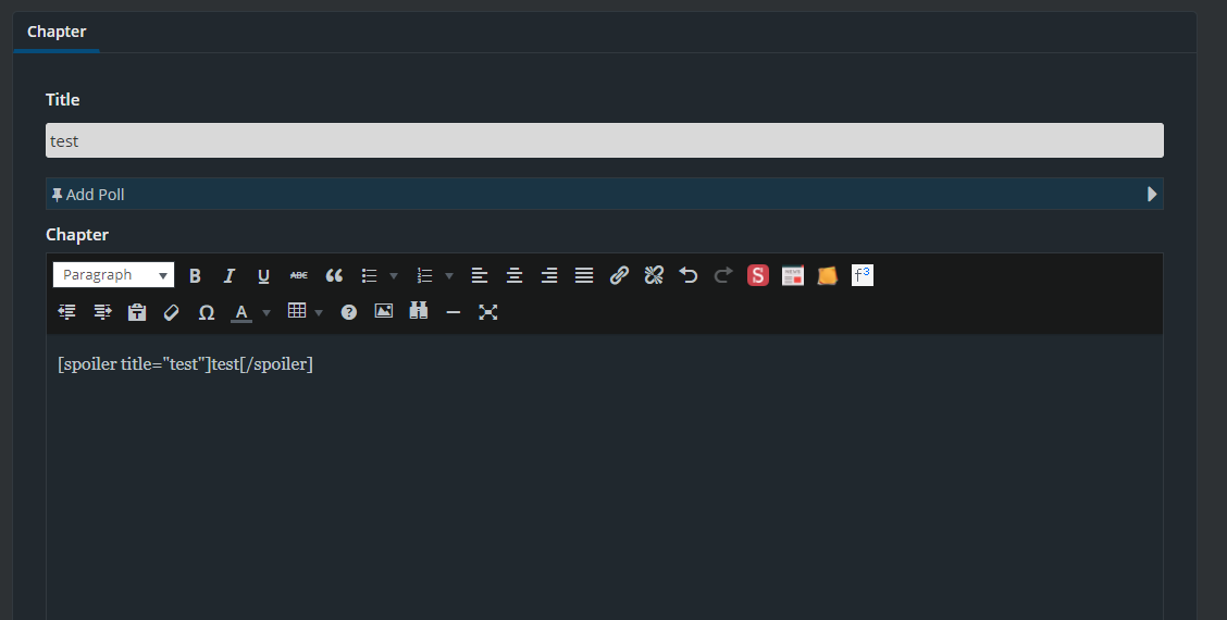 Hey dudes and dudettes. Ai-chan has a question. How do you put a title for the spoiler? Ai-chan isn't talking about the forum, Ai-chan is talking about the main scribblehub page, inside the chapters.