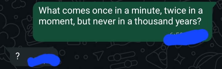 What comes once in a minute, twice in a moment, but never in a thousand years?