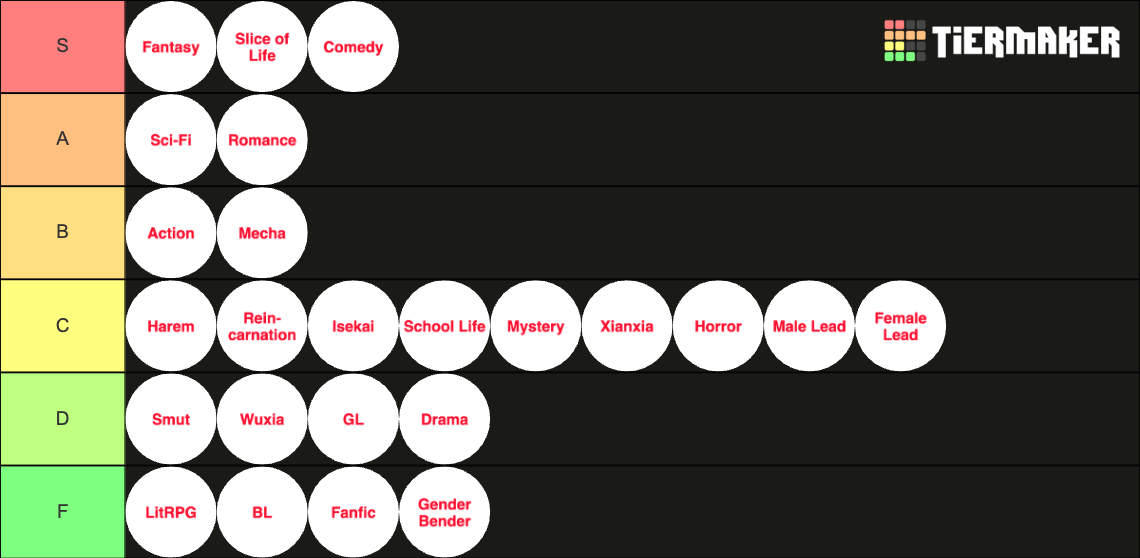 By the way, somehow xianxia and wuxia manhuas are A, but in a novel form it's F. Just don't like reading them, want to see flashy images