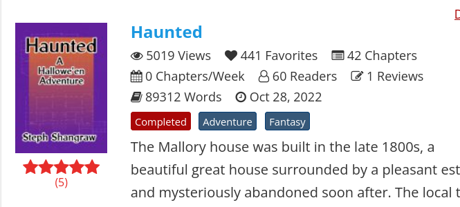 One of my series, "Haunted," (100% original) is listed in my dashboard and I can access it from there, but I can't see the page itself when I click on it, just a 404 error. It isn't listed on my author profile anymore, either. From my dashboard, it still shows all chapters as being published normally.