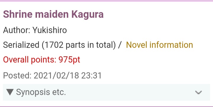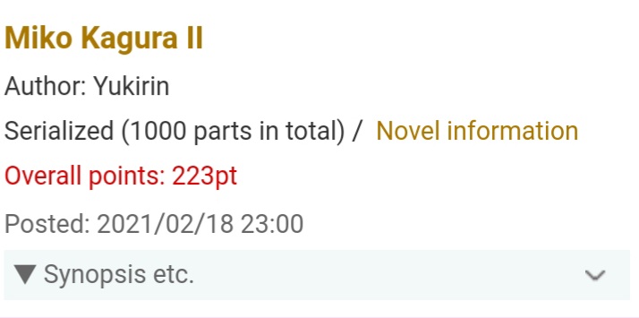 The OP's link: https://xmypage.syosetu.com/mypage/novellist/xid/x6092p/