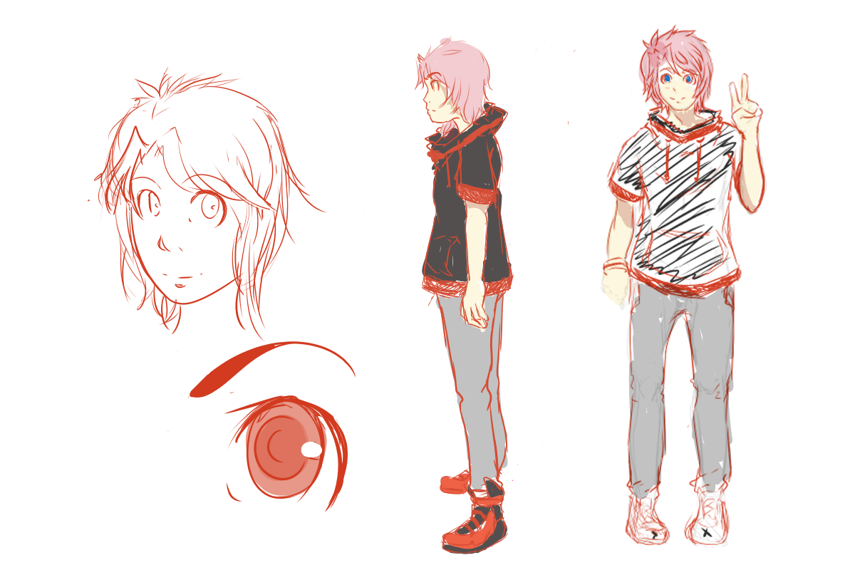 The design looks how should I say, out of fashion? Kids nowadays all wear brands and have the newest iPhone while they are in elementary school. Bonk me if I missed it, but is it contemporary setting? Personally, I would make his half hoodie looser. Loose top, normal fit pants.