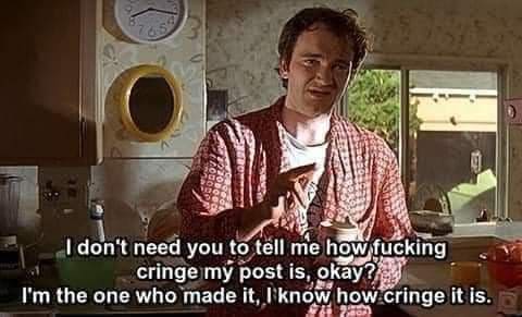 "Nononono, don't you fucking realize man, that when my e-girl comes stalking my account and finds a dead meme under my post I'm gonna get blocked, alright? No VC on Discord, no DMs on Snapchat; I'm gonna get fucking BLOCKED, okay? And I don't want to get fucking BLOCKED. And, you know, fuck, I want to like your dead memes but I don't want to lose my e-girl doing it, alright?"