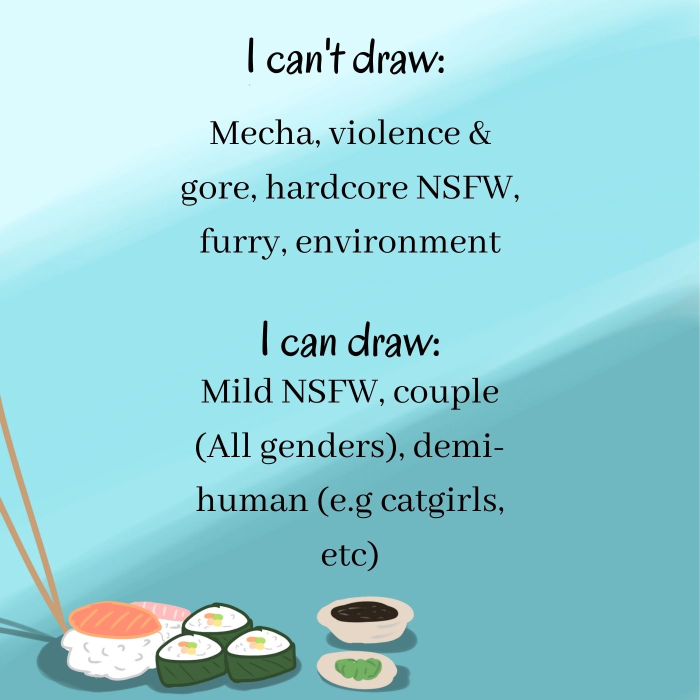 Well, a few days ago, I drew NSFW arts for the first time, so, for those of you who are curious, you can stalk or maybe give it a follow my Twitter >> https://twitter.com/sushirollw