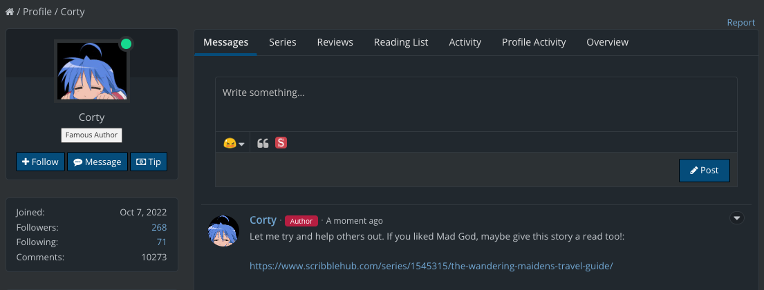 ? Or search it the boomer way like: “Mad God ScribbleHub” in your web browser of choice. ?